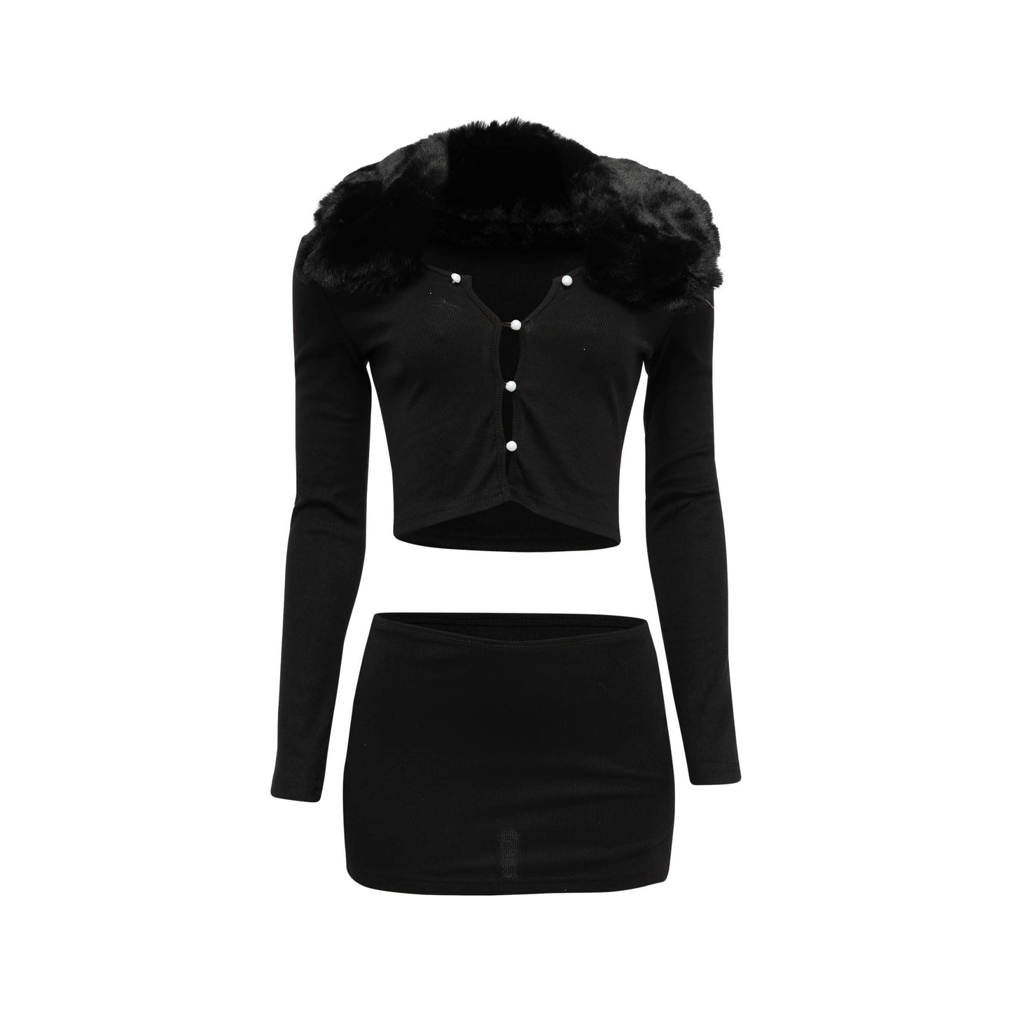 Plus Size Cowl Neck Ruch Ruffle Black Dress