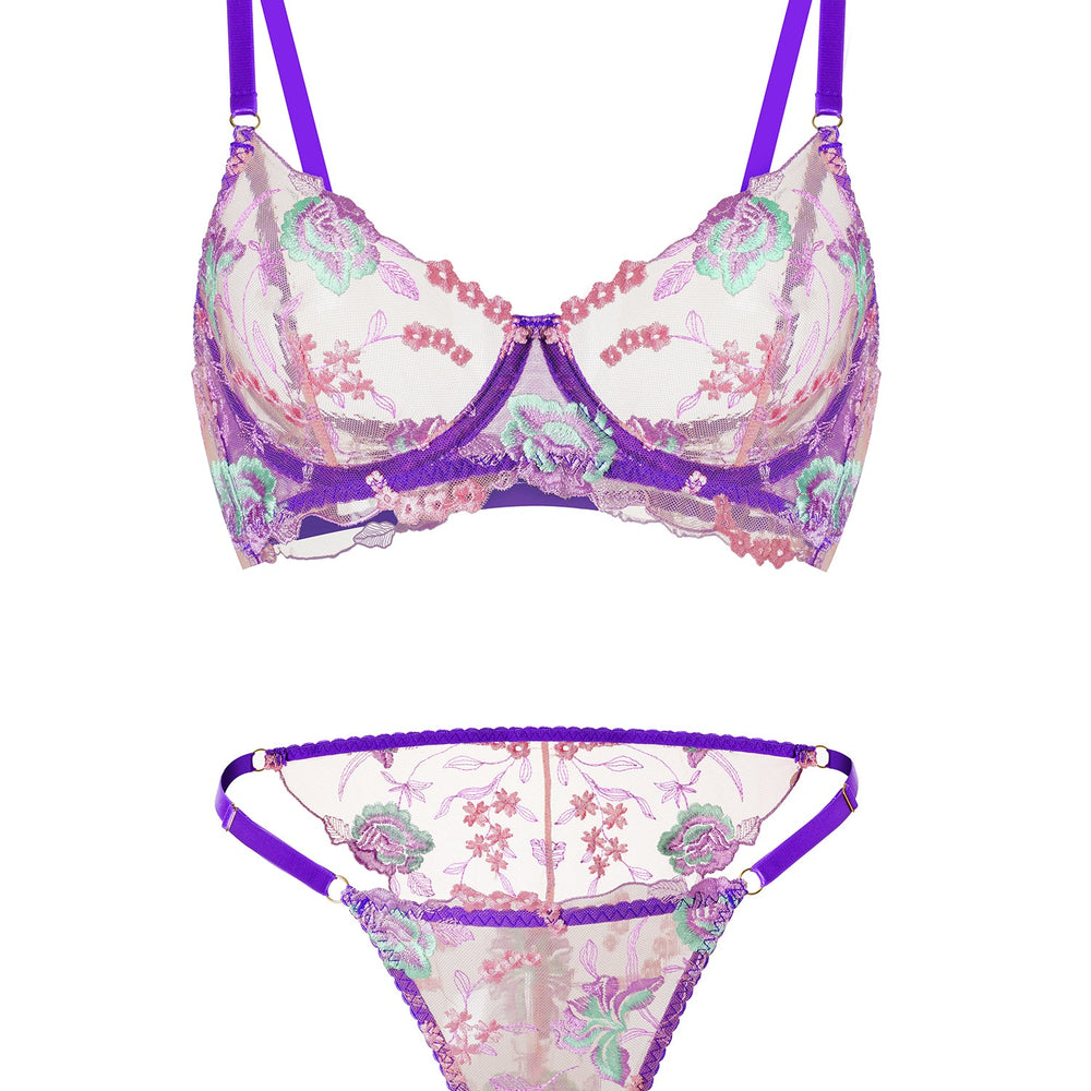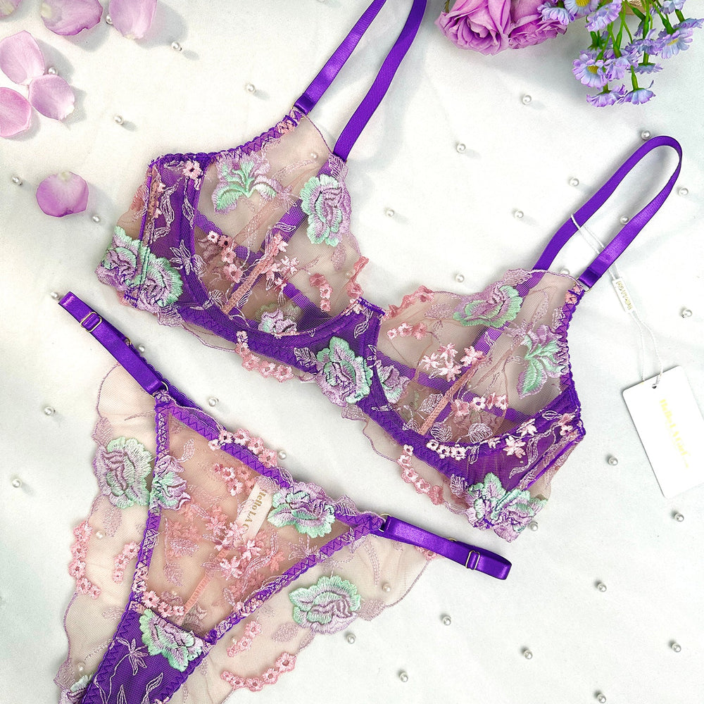 💜This Purple Petal Embroidered Lingerie Set combines elegance with allure, featuring a rich shade of purple adorned with intricate embroidery. Delicate petals dance along the edges, enhancing its romantic appeal. Designed to captivate, it blends luxurious comfort with exquisite craftsmanship, making it a statement piece for intimate moments.