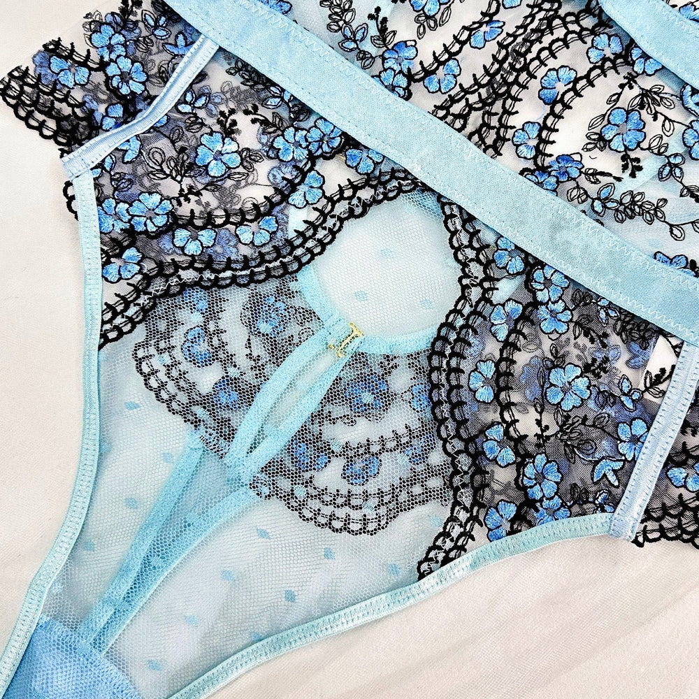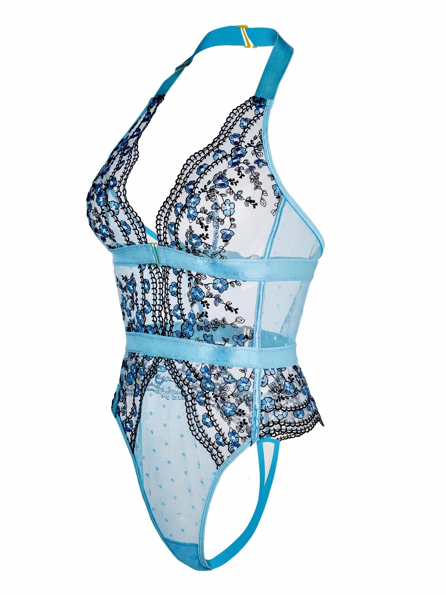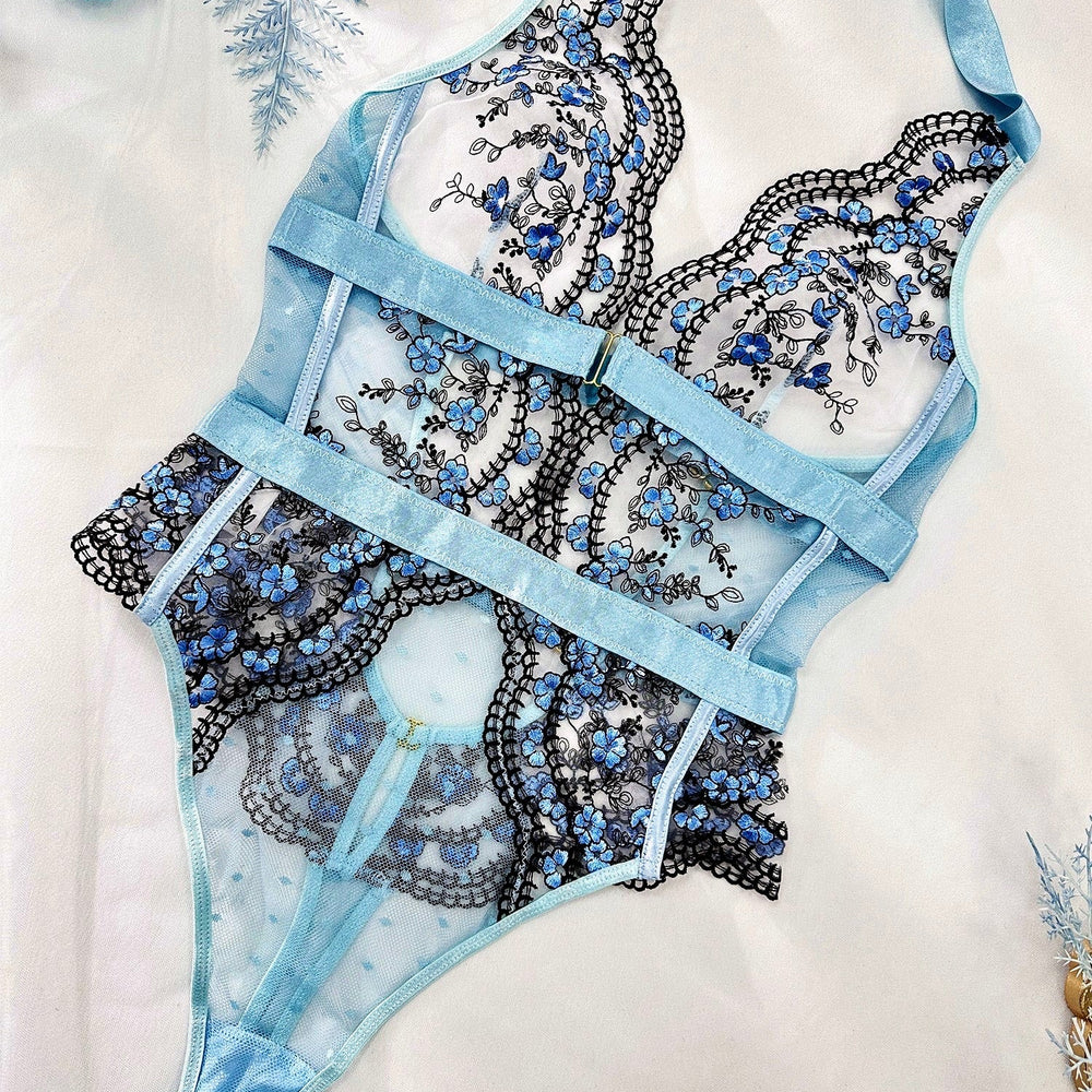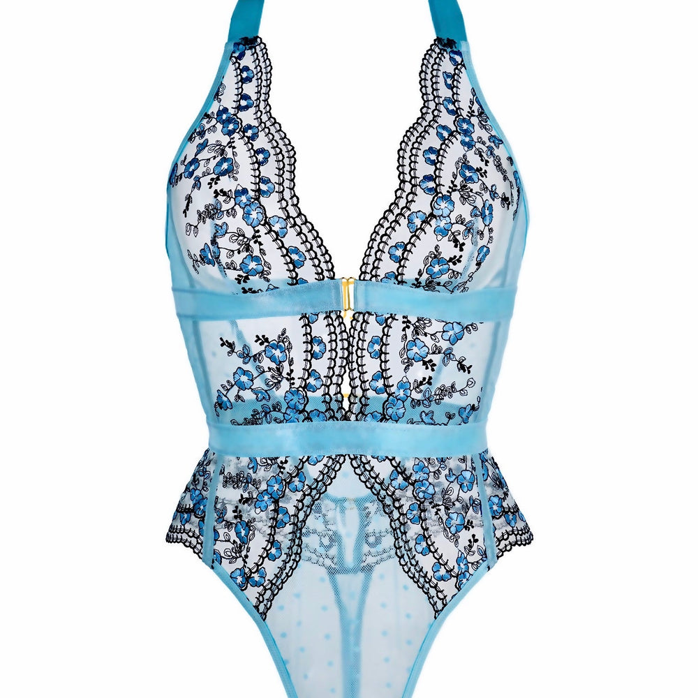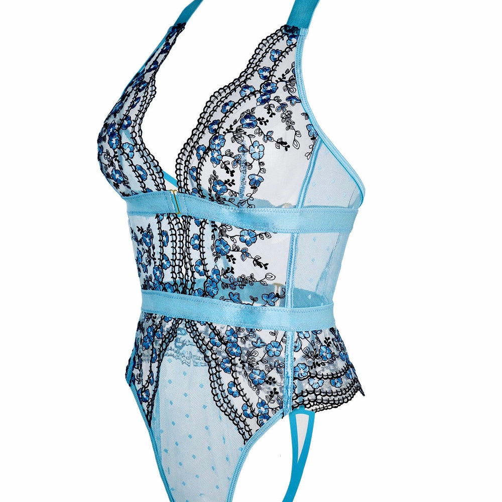 Tender Blossom Halter bodysuit includes one piece body suit. Feel ultra sexy wearing this matching set and it will guarantee all eyes are on you.