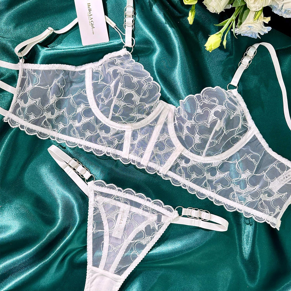 ✨ Elevate your lingerie collection with our white heart embroidered intimates! ❤️ Immerse yourself in pure comfort and romantic charm. Discover the perfect blend of style and love. Shop now for a touch of timeless elegance! 👙💕